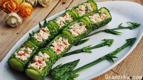 在白雪飘飞的冬季大节里,一家人共进晚餐中播撒出春的气息,上道描摹自然,靓眼开胃又暖意的美丽菜。虽然麻烦点夸张点,那春竹般翠绿娇艳的样子,既给座上客视觉味觉都带来新意,还代表着同迎新年的美好寓意:翠竹报春,前程一片欣欣向荣!