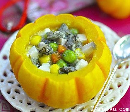 6.金瓜鲜蘑海蛎煲