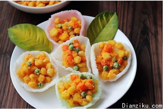 咸蛋黄焗过的玉米粒配上脆脆的虾片,很好吃的一道美味小食,尤其是家里来了小孩子的时候,特别拿的出手。当然,大人也都纷纷秒杀。心动了吗?新年餐桌必备!