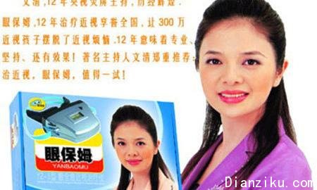 离开央视后的文清,演戏代言广告两不误,由她代言治疗近视的医疗器械的“眼保姆”,在广告中含有大量不科学地表示功效的断言和保证,同时还声称“产品销售现场场面壮观、多家护眼中心产品断货”等,夸大其辞广告语,因涉嫌欺骗和误导消费者被投诉,后被北京市工商局曝光。文清被指有失道德,代言违法广告惹来网上指责声不断。